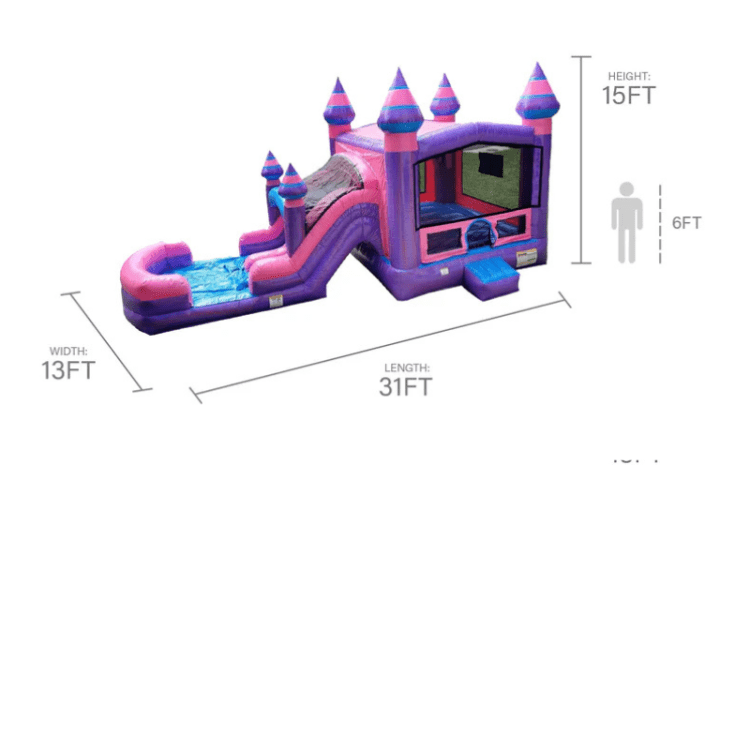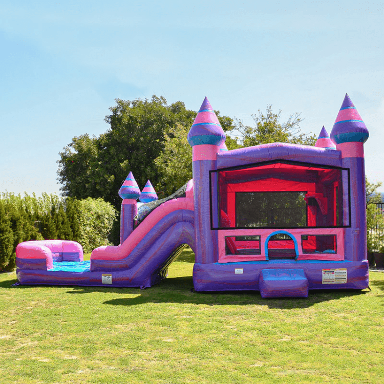 Ideal for birthday parties, school events, church functions, carnivals, and backyard parties, the Cotton Candy Combo is a top choice for inflatable rental